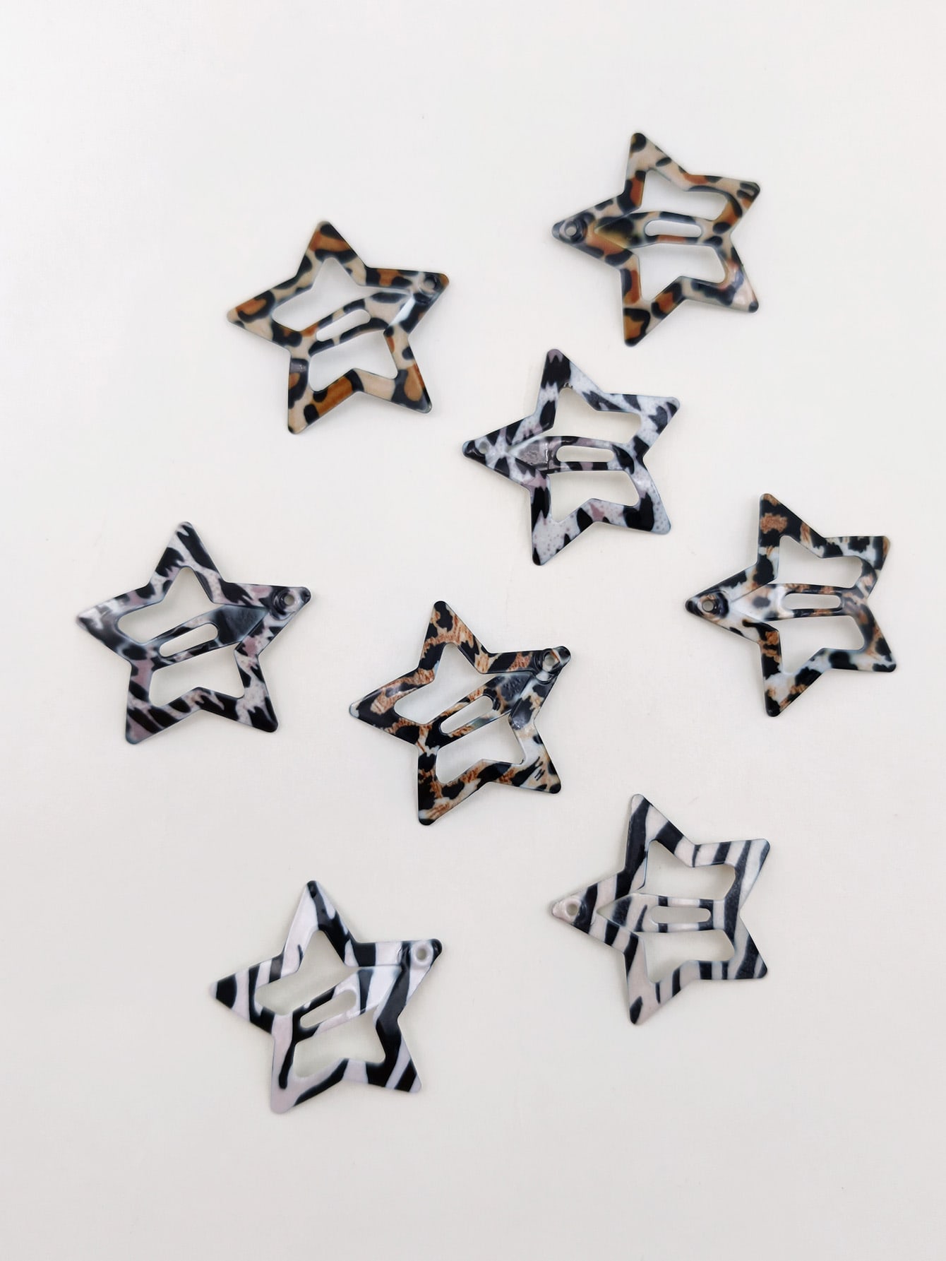 مشبك ضغط نمط الفهد بتصميم نجمة 8 قطع – Size: one-size