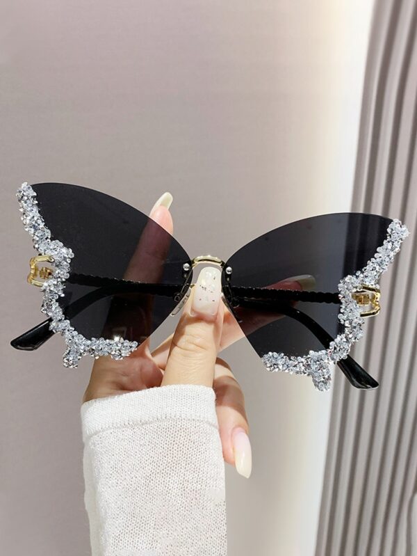 كمية نظارات شمسية فراشة & بديكور حجر الراين فاخر زوج واحد Y2K - Size: