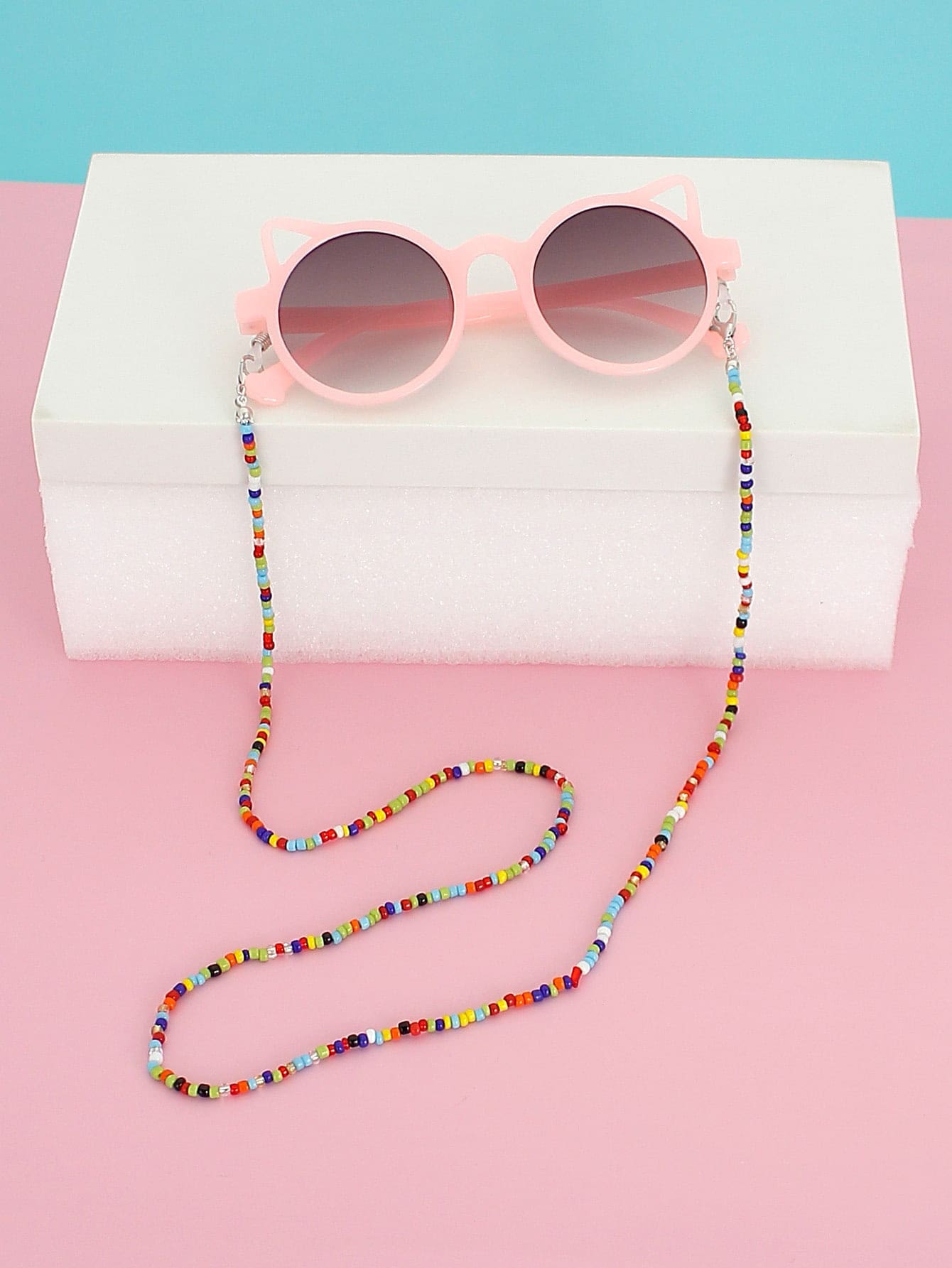 كمية نظارات عصرية بعدسات ملونة مع سلسلة نظارة بالخرز بنات - Size:
