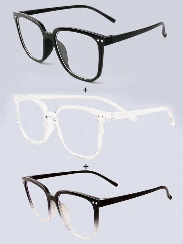 نظارات لاصقة شفافة مربعة بي سي للزينة 3 أزواج،نظارات شمس غير وصفية عصرية مناسبة للارتداء اليومي ،المكتب ،القراءة – Size: Multicolor