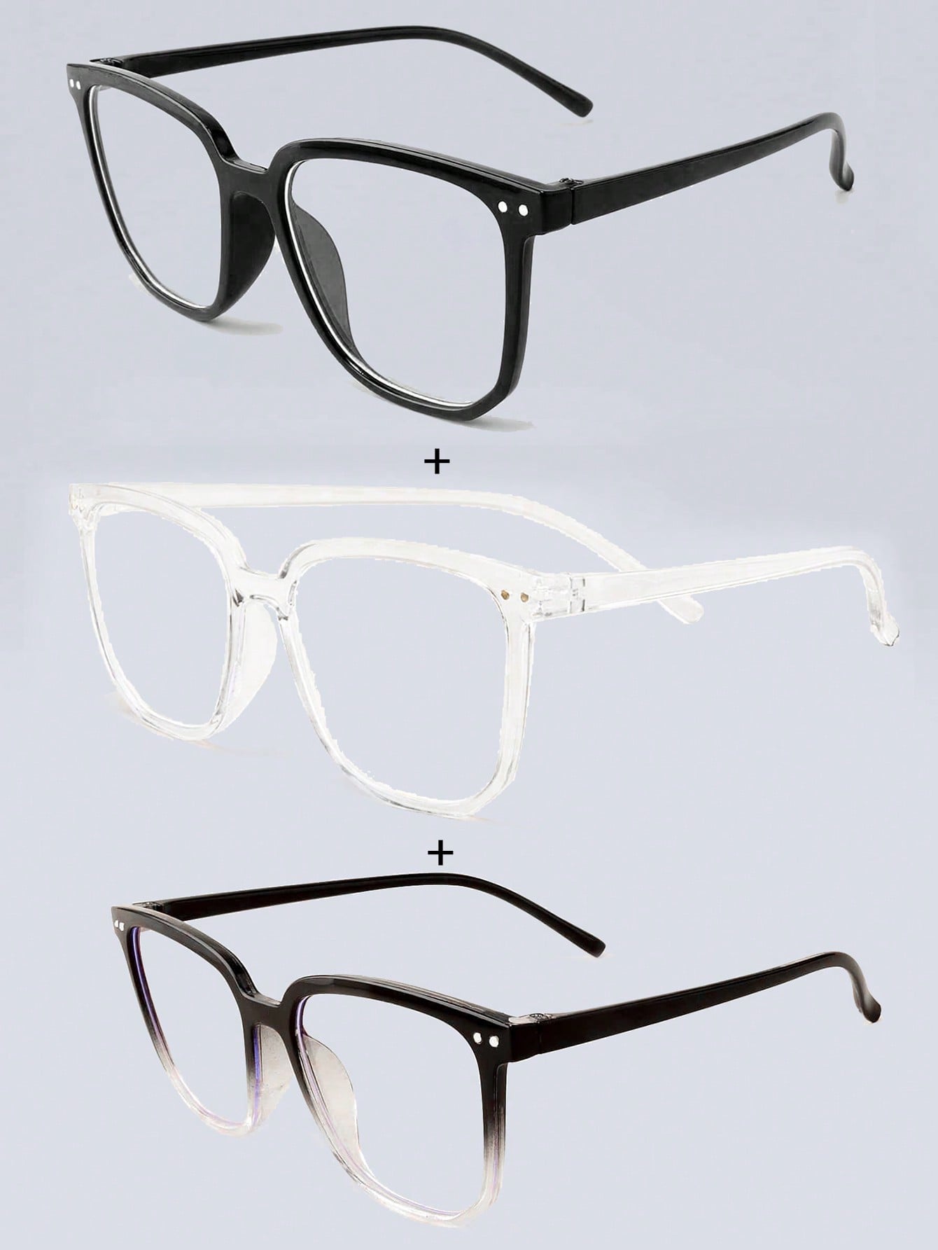 كمية نظارات لاصقة شفافة مربعة بي سي للزينة 3 أزواج،نظارات شمس غير وصفية عصرية مناسبة للارتداء اليومي ،المكتب ،القراءة - Size: Multicolor
