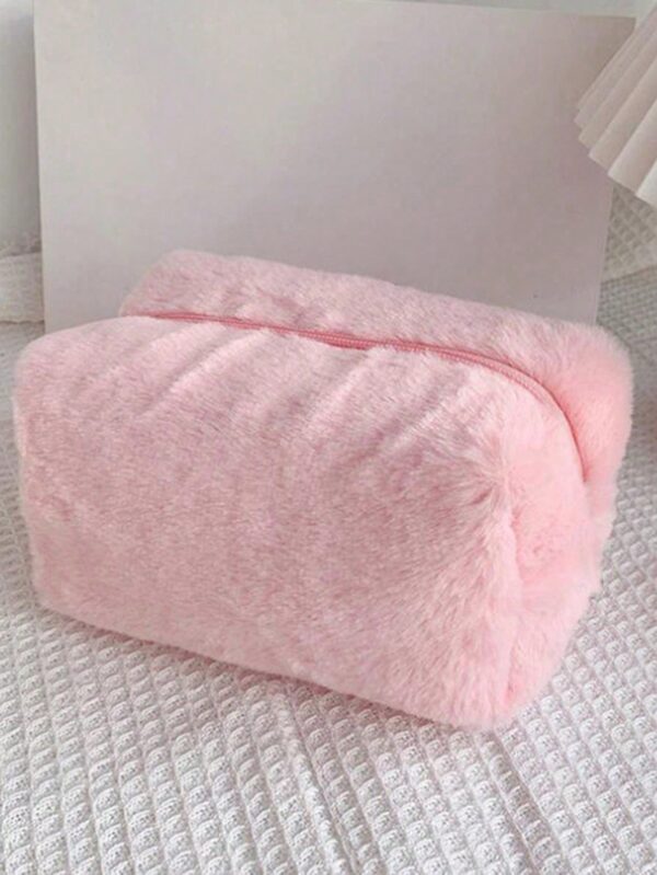 وردي موحدة اللون قطيفي حقائب مكياج , ماكرون لون Y2K جمالي حلو سعة كبيرة حقيبة تخزين محمول حقيبة مستحضرات التجميل أسود جمعة – Size: