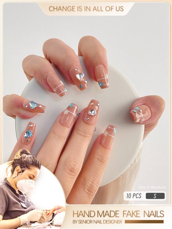 يرقي لك مع 10 قطع قصير نعش ثلاثي الأبعاد زخرفة قلب تغطية كاملة أظافر اصطناعية عدة – Size: