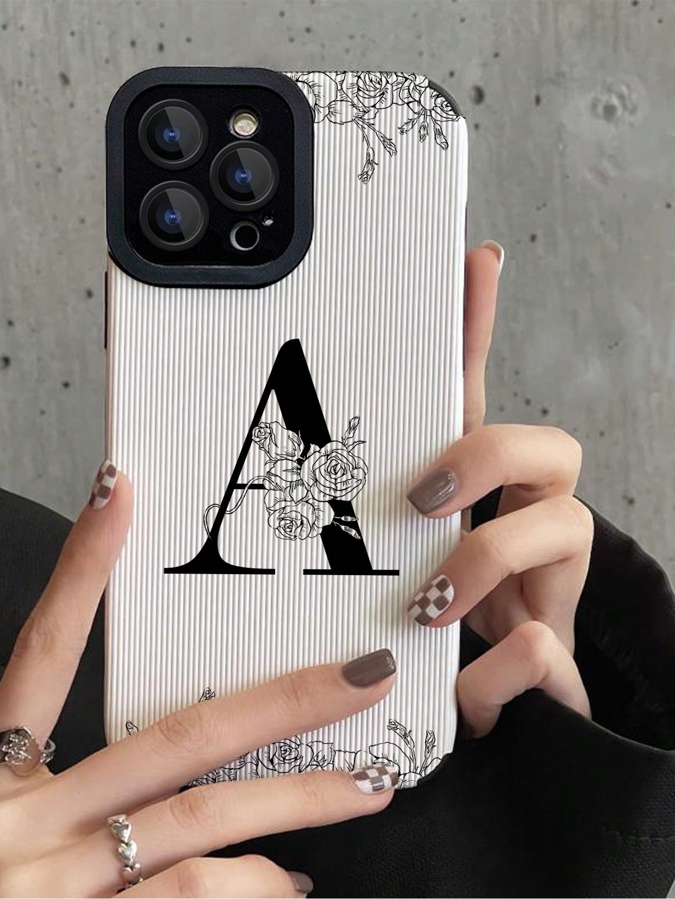 1 قطعة ثلاثية الأبعاد حرف A ونمط زهرة حافظة هاتف ناعمة مضادة للسقوط لهاتف آيفون وسامسونج – Size: 11