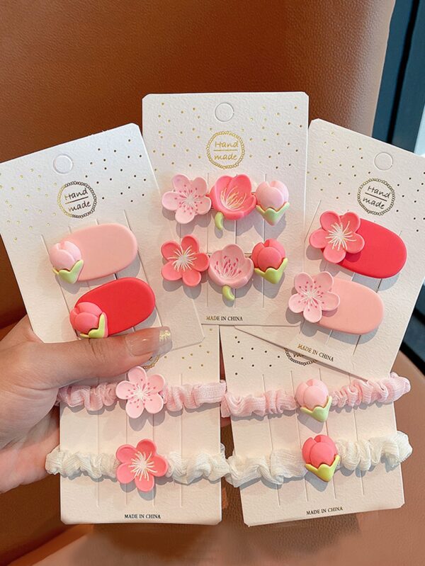 12قطع/طقم وردي قلب & مزخرف بزهر دبوس الشعر & مرون ربطات الشعر – Size: one-size