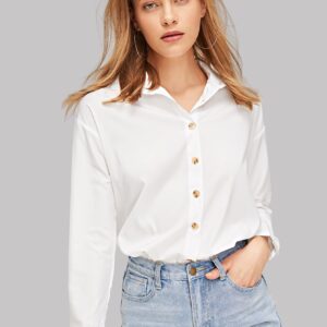 SHEIN Essnce قميص سادة بحافة منحنية وأزرار – Size: XL