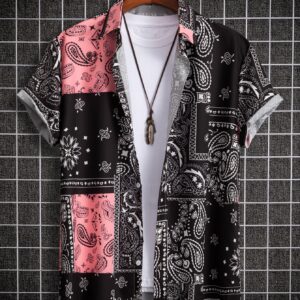 ROMWE قميص طباعة بيزلي للشباب – Size: S