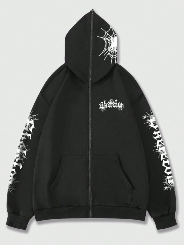Goth هودي بسحاب بطباعة أحرف للشباب – Size: L