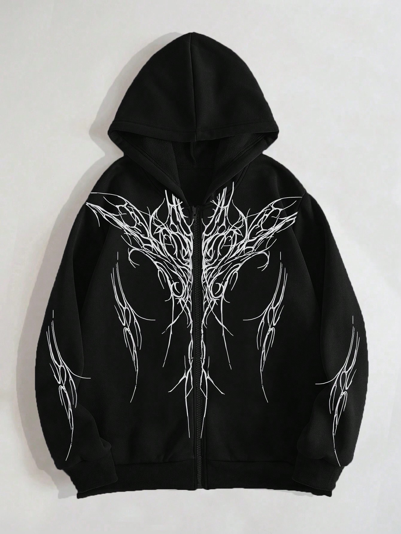 كمية Goth هودي حراري طباعة النقش سستة للشباب - Size: M