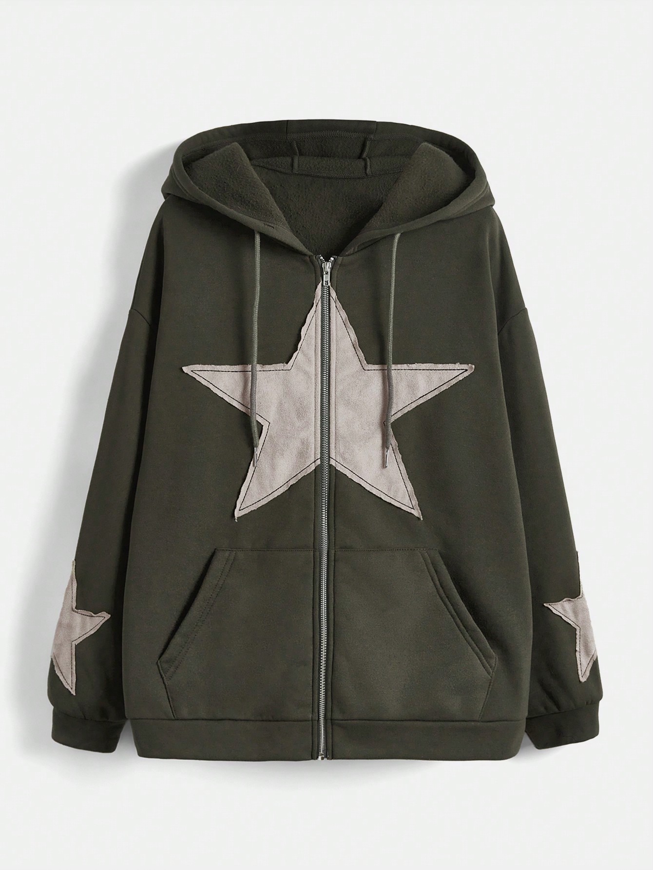 Grunge Punk هودي نجمة مرقع سستة رباط – Size: M