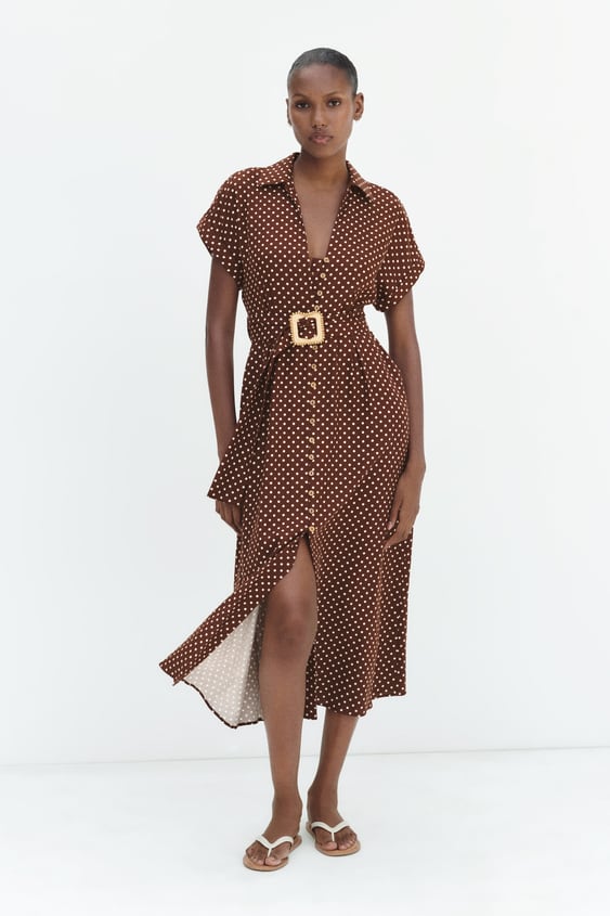 LINEN BLEND POLKA DOT MIDI DRESS – Size : M