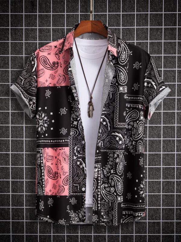 ROMWE قميص طباعة بيزلي للشباب – Size: S