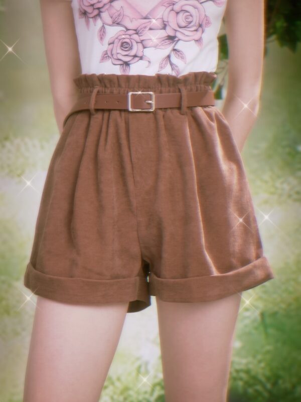 كمية ROMWE Fairycore بنطلون قصير خصر مكشكش ورقي نسيج قطن بدون حزام - Size: S