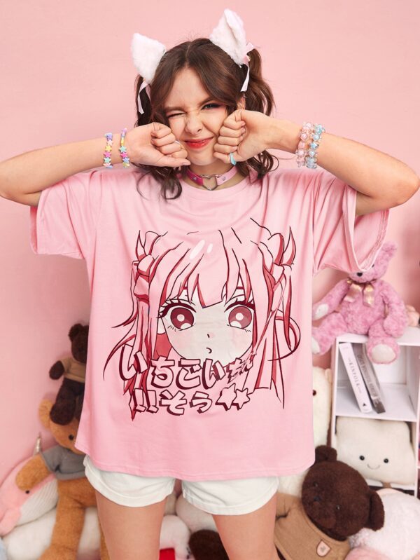 ROMWE Kawaii تي شيرت كبير الحجم طباعة شكل – Size: L