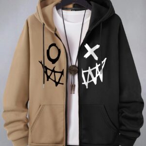 ROMWE Street Life كنزة هودي برباط مع سحاب برسوم كرتونية للرجال من دون تي شيرت – Size: XXL