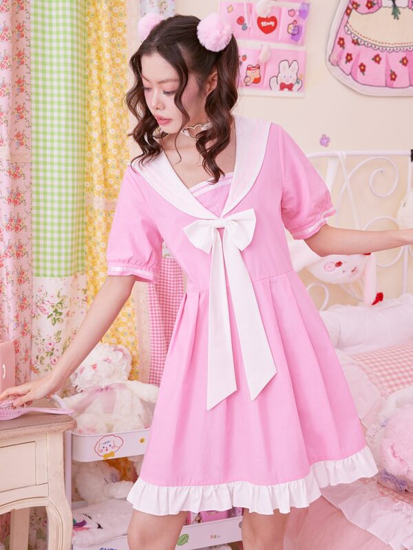 كمية ROMWE Kawaii فستان ياقة البحار ذو طيات حافة مكشكشة - Size: L