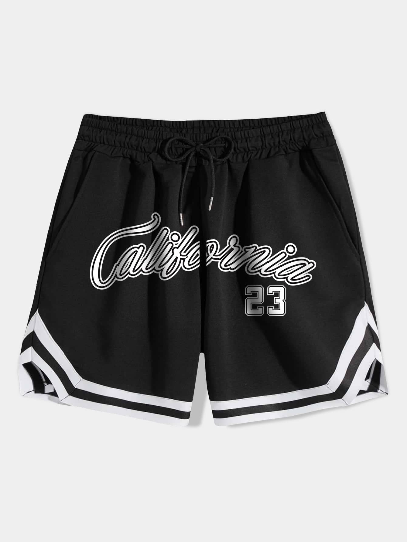 ROMWE Prep بنطلون قصير بطباعة أحرف مقلم مخطط للشباب – Size: M