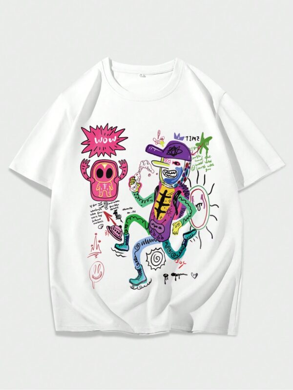 ROMWE Street Life قميص رجالي بطبعات كرتونية – Size: S