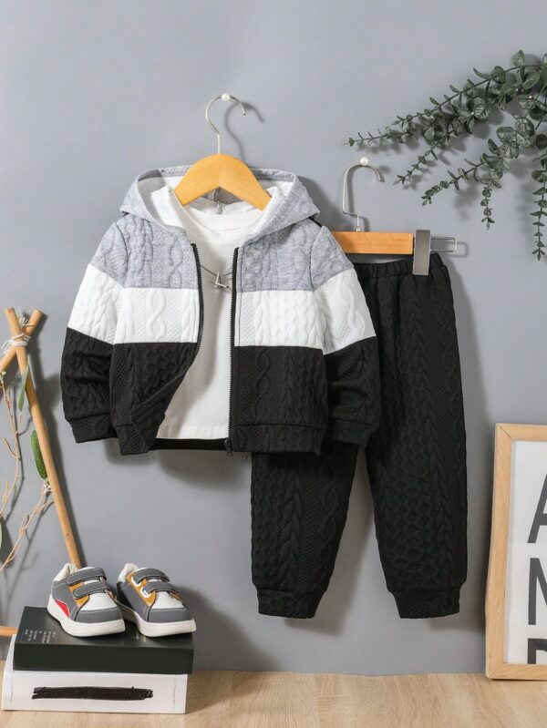 SHEIN جاكيت ألوان متباينة سستة قبعة مع بنطلون رياضي بدون تي شيرت للاولاد الاطفال – Size: 2-3Y