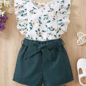 تيشيرت بأطراف مكشكشة وطباعة زهور وشورت بحزام أطفال – Size: 68