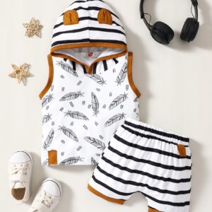 للاطفال طباعة مخطط تصميم أذن ثلاثي الأبعاد قبعة سباحة لباس علوي تانك مع بنطلون قصير – Size: 68