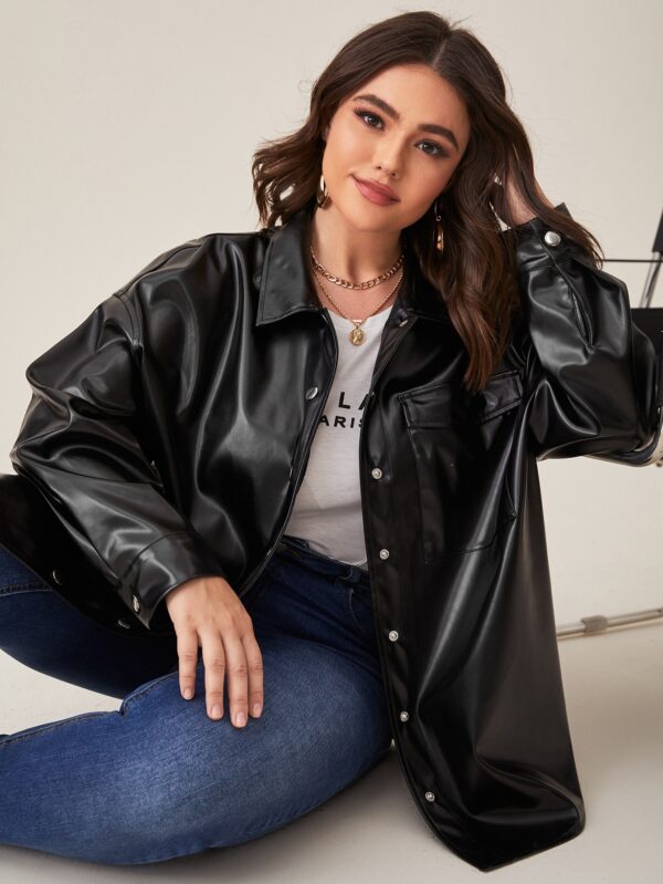 SHEIN معطف جيب قلاب منخفض الاكتاف جلد صناعي مقاس كبير – Size: 4XL