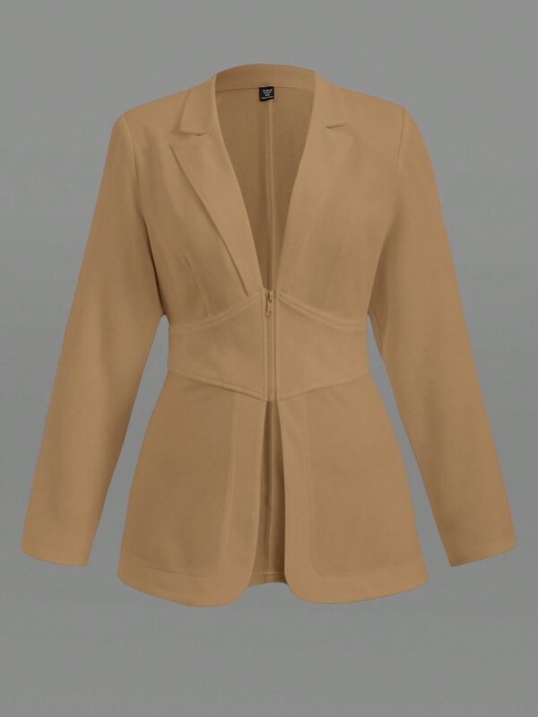 SHEIN Clasi جاكيت بياقة مطوي مسنن سستة مقاس كبير – Size: 1XL