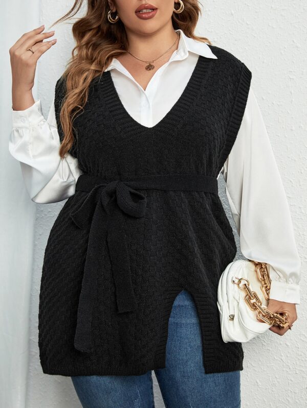 SHEIN Essnce صدرية ثقيلة بحافة شق حزام بدون بلوزة مقاس كبير – Size: 3XL