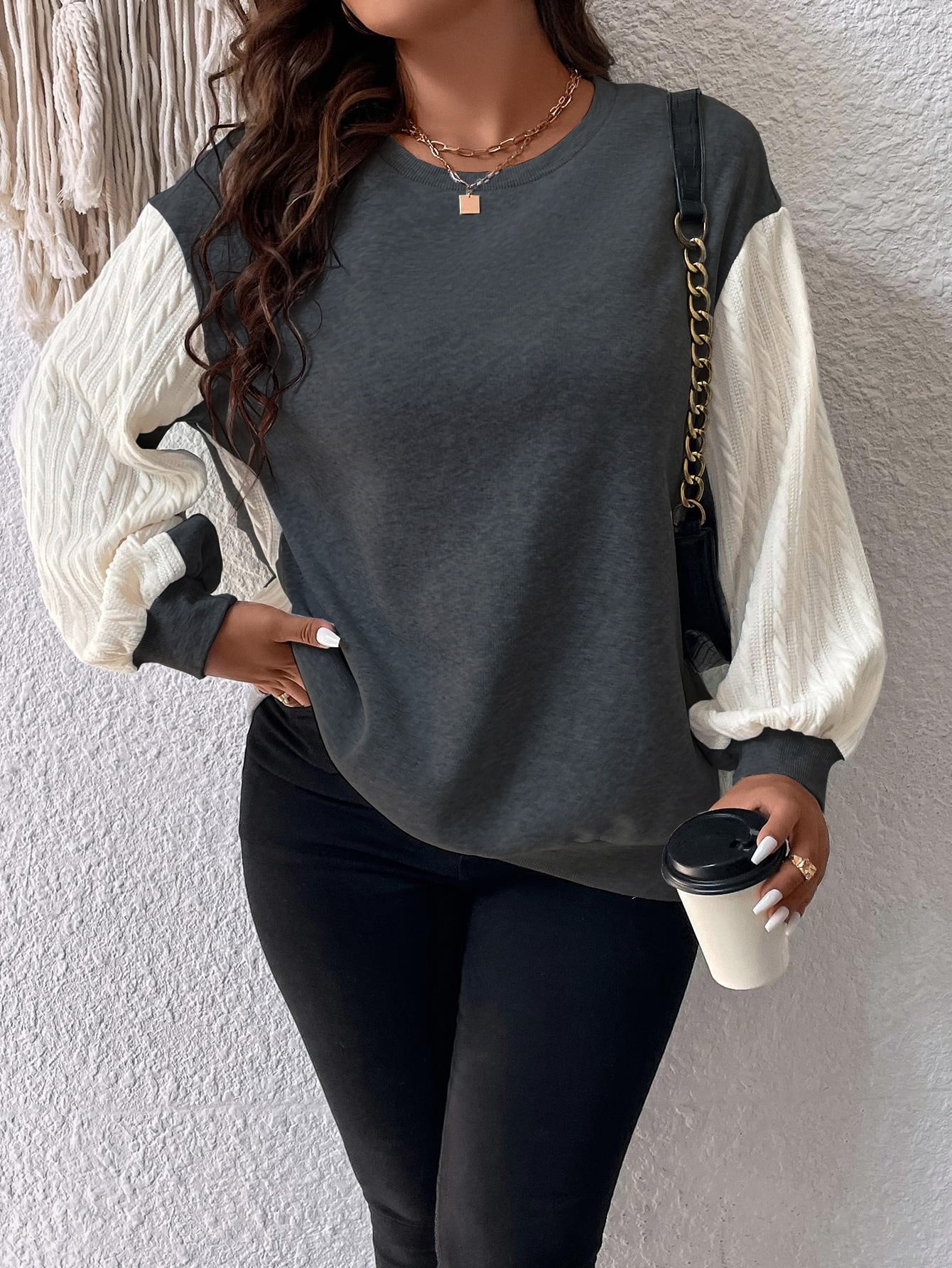 SHEIN Essnce قميص ثقيل ألوان متباينة اكمام أسقف مقاس كبير – Size: 1XL