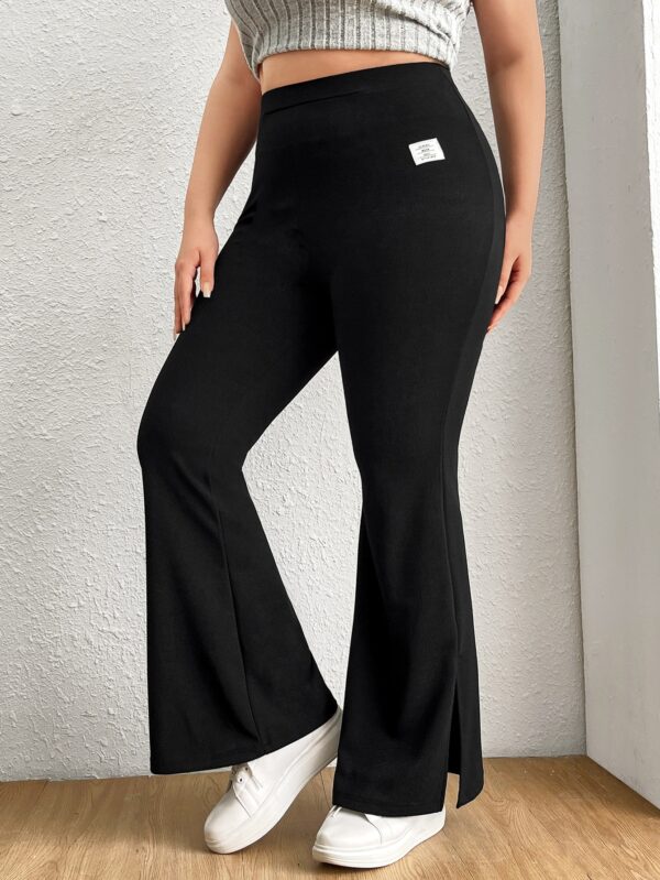 كمية SHEIN EZwear بنطلون بساق واسع تفاصيل مرقع بعبارة بحافة شق مقاس كبير - Size: 4XL