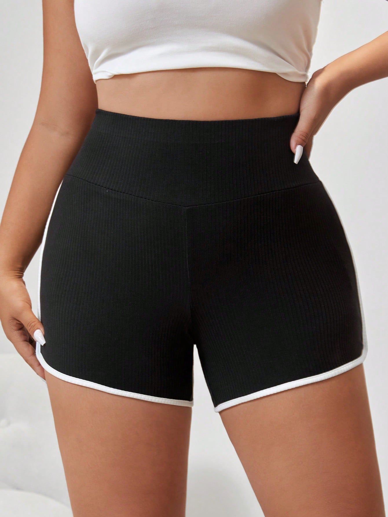 كمية SHEIN EZwear بنطلون قصير شريط متباين ثنية مقاس كبير - Size: 2XL