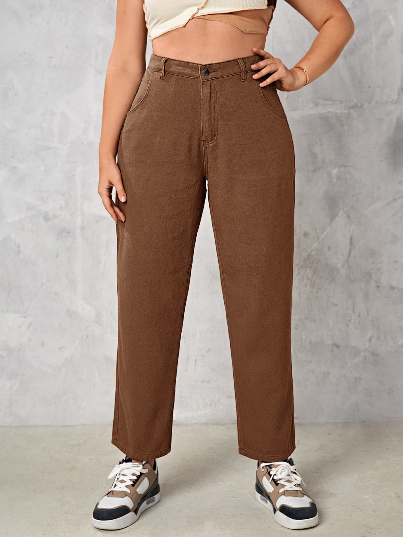 كمية SHEIN EZwear جينز بساق مستقيم جيب مائل مقاس كبير - Size: 4XL