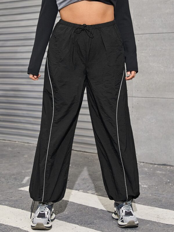 كمية SHEIN ICON سروال المظلة جوربكور رباط خصر شريط متباين مقاس كبير Bikercore - Size: 2XL