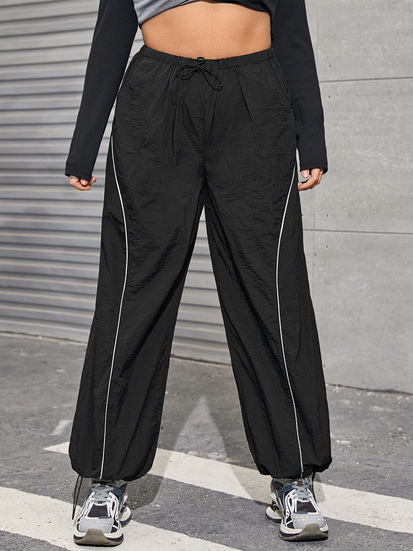 SHEIN ICON سروال المظلة جوربكور رباط خصر شريط متباين مقاس كبير Bikercore – Size: 2XL