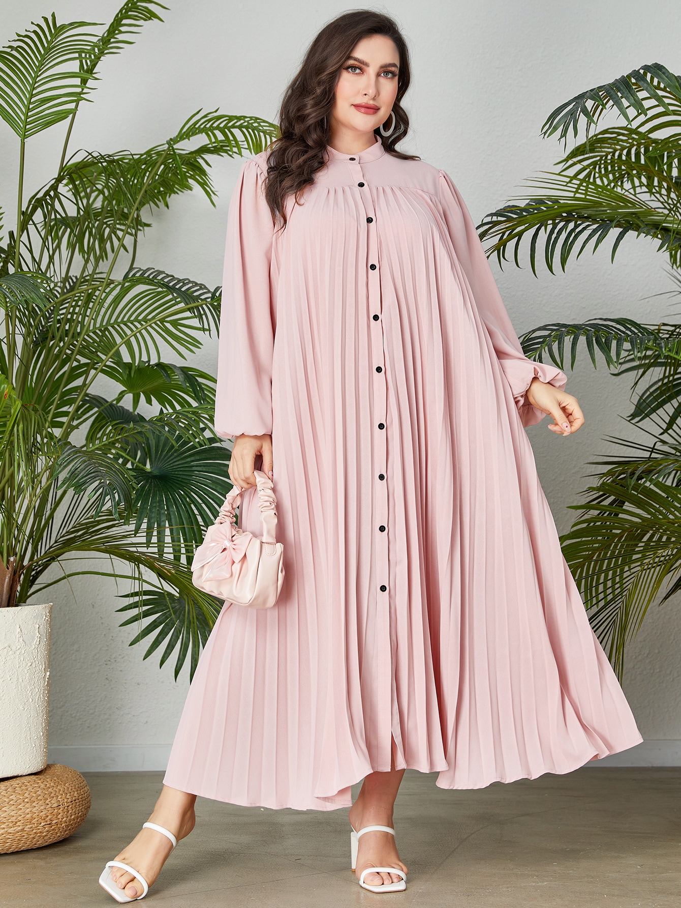 SHEIN Modely فستان وقوف الياقة أكمام فانوس حافة تجاعيد مقاس كبير – Size: 4XL