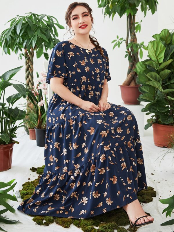 SHEIN Modely مقاس كبير فستان بطباعة زهر شامل اكمام فراشة حافة مكشكشة – Size: 1XL