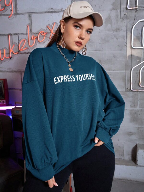 SHEIN Mulvari سويت شيرت كاجوال بأكمام طويلة ومقاس كبير بنصف الياقة المدورة مع تصميم نص مطبوع – Size: 1XL