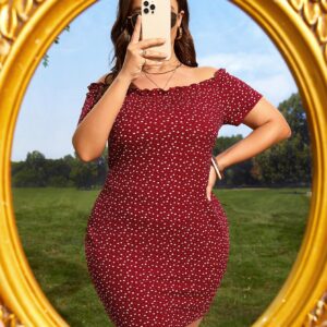SHEIN VCAY فستان ضيق بطباعة قلب شامل مزركش مكشوف الكتف مقاس كبير – Size: 2XL