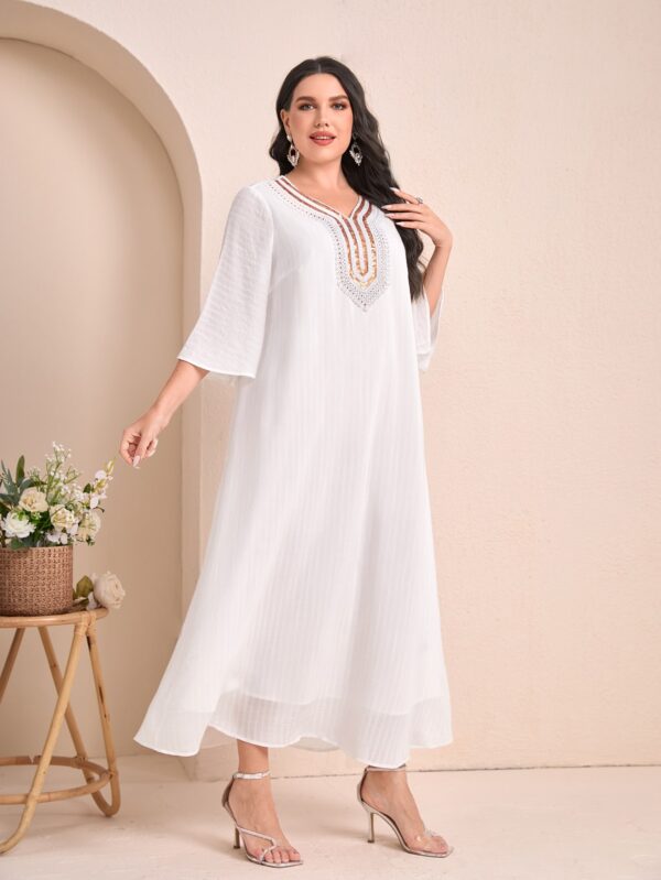 SHEIN Mulvari فستان شريط متباين بياقة V مقاس كبير – Size: 4XL