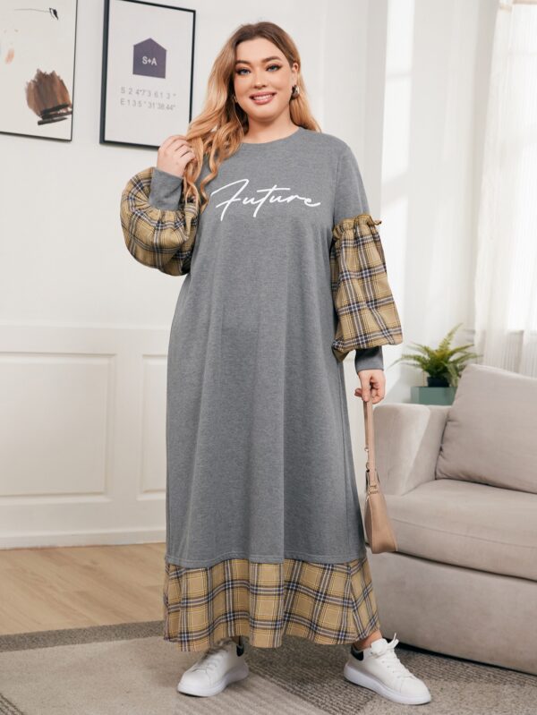 SHEIN Mulvari فستان قميص ثقيل باكمام فانوس مزركش بجرافيك عبارة مع ترتان 1 قطعة مقاس كبير – Size: 4XL