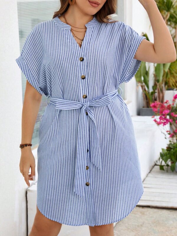 SHEIN Unity فستان قميص طباعة مخطط اكمام جناح الخفاش حزام مقاس كبير – Size: 2XL