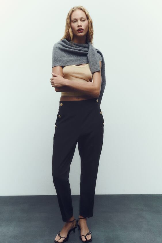 STRAIGHT FIT TROUSERS WITH BUTTONS – Size : S