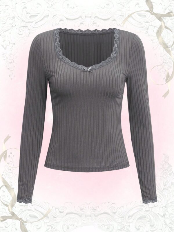 Sweetness تي شيرت موحدة اللون دانتيل متباين اللون – Size: M
