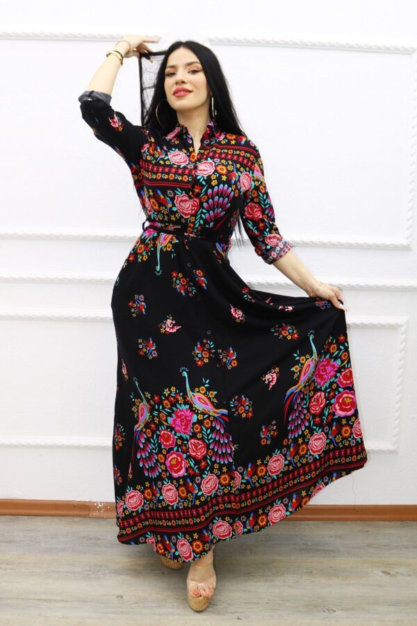 Tavus Kuşu Desen Gömlek Elbise – Size : M
