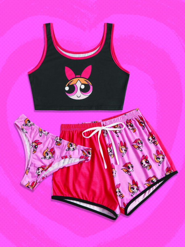 The Powerpuff Girls | ROMWE طقم بيجامة صور رسوم كارتون شريط متباين 3 قطع – Size: L